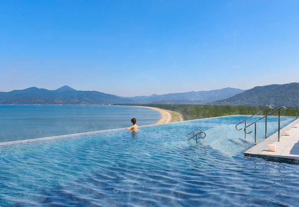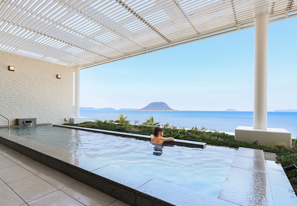 푸른 바다와 하늘이 이어진 야외 인피니트 온천 스파가 매력, 가라쓰 시사이드 호텔 唐津シーサイドホテル