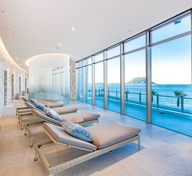 온천 후에는 바다를 바라보며 휴식할 수 있는 베드도 마련되어 있어 노곤해진 몸을 뉘일 수 있는 휴식공간도 갖춰져 있는 리조트 호텔의 역할을 다하고 있습니다. 유아가리라고 불리는 온천 후 휴식 문화도 즐겨볼 수 있겠습니다.